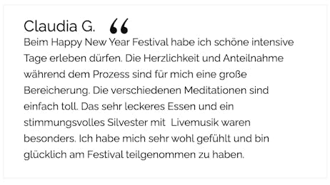 "Bei meiner Arbeit im Asylzentrum als Meditationstrainer, im wöchentlichen Glückstraining und auf den Meditatonsfestivals ist mir eines deutlich geworden: Ein Meditierer sollte von anderen Meditierernden umgeben sein. Denn was auch immer in uns vor sich geht, geschieht nicht nur in uns, es berührt auch die Menschen, die in unserer Nähe sind. Mit anderen zu meditieren, bringt einen mehr und mehr zu sich selbst und zum Wachsen."