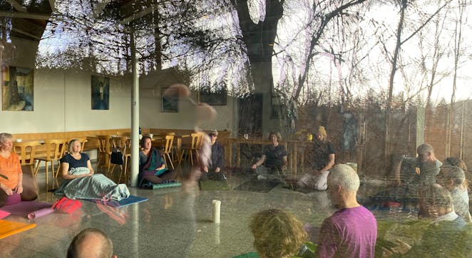 Wir kommen zusammen zum Feiern und Meditieren am Orts- und Waldrand auf einer Anhöhe ca. 10 Min. von der Ortsmitte im Naturfreundehaus mit großen Glaspavillion-Saal mit Fußbodenheizung und modernen Bettenhaus. Oshos bahnbrechende Meditationstechniken mit Musik und Bewegung ermöglichen den TeilnehmerInnen zunächst den angesammelten Stress und die Anspannung loszulassen und sich dann wieder mit dem Fluss des Lebens und der Freude zu verbinden. Die einstündigen aktiven Osho Meditationen – basierend auf jahrtausendealten östlichen Weisheiten und westlicher Wissenschaft – bieten auch Menschen, die in Meditation ungeübt sind, einen einfachen Zugang zum wahren Selbst als Quelle für Entspannung, Sein und Glückseligkeit.